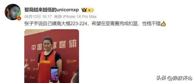 张子宇的潜力肯定非常大,我们希望她在正确的道路上慢慢走不着急,她和我们一般人不一样,300斤和姚明体重差不多,一旦出现伤病就不好办。